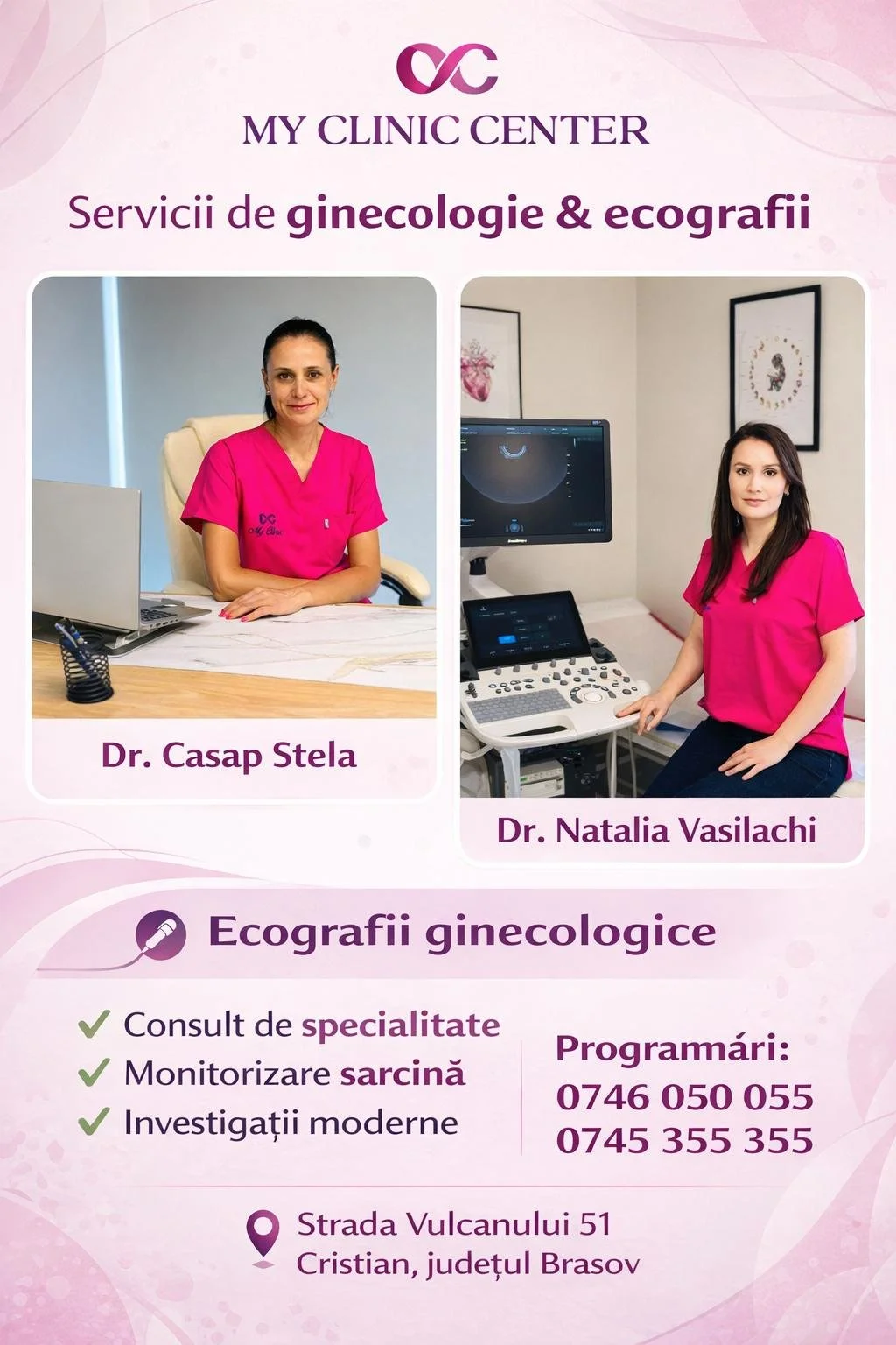 Alegând My Clinic Center, beneficiați de servicii medicale de înaltă calitate, realizate de medici dedicați și bine pregătiți. Fie că este vorba despre o consultație de rutină, o ecografie sau testul Babeș-Papanicolau, fiecare pacientă este tratată cu atenție și respect. Grija pentru sănătatea dumneavoastră începe cu o alegere informată, iar My Clinic Center este partenerul de încredere pe termen lung.