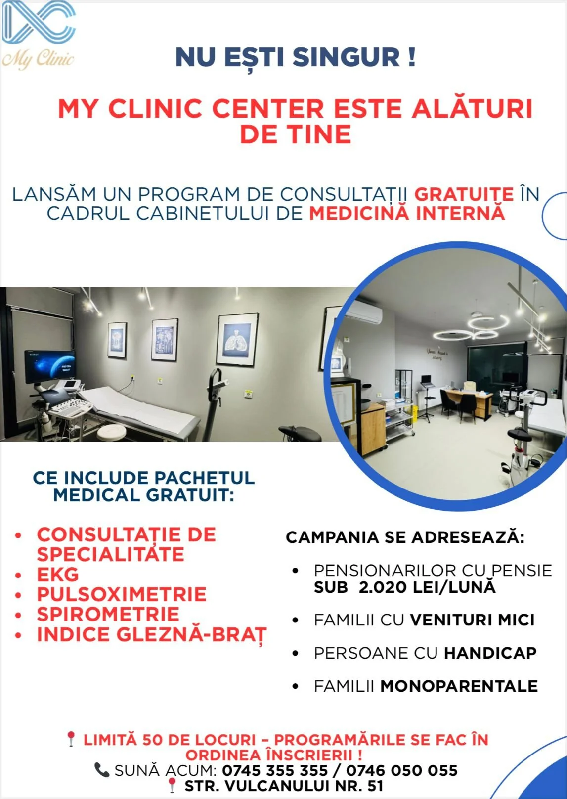 My Clinic Center își dorește să fie parte activă din comunitate și vine în sprijinul celor care au nevoie de ajutor medical, oferind servicii gratuite, accesibile și de calitate!