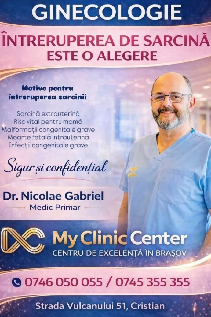 Dr. Nicolae Gabriel: Întreruperea de sarcină nu este doar o procedură, ci un act medical complex, care presupune responsabilitate, experiență și o evaluare atentă a fiecărui caz. La My Clinic Center – Centru de Excelență Brașov, abordăm fiecare pacientă individual, respectând protocoalele medicale moderne, legislația în vigoare și, foarte important, starea fizică și emoțională a femeii.
